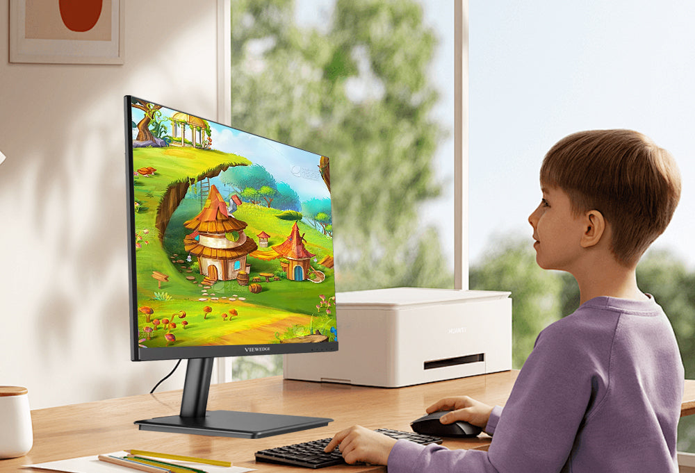 Flicker-free tech and a blue light filter offer comfortable, extended viewing with reduced eye strain.